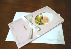 ワンポイントに過去の作品を用いた招待状。