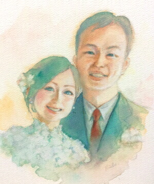 お二人の絵はドレス試着時の写真をもとに。