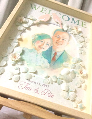 お二人の肖像画入りのウェルカムボードを。