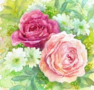 参考に、二輪のバラを描きました。