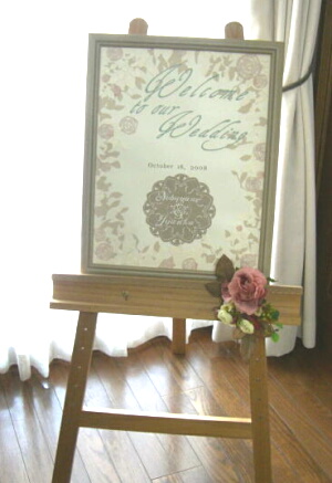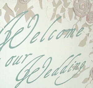 題字、飾りのバラと濃淡の葉には、それぞれ質感の違う素材紙を使用し、変化を出しています。