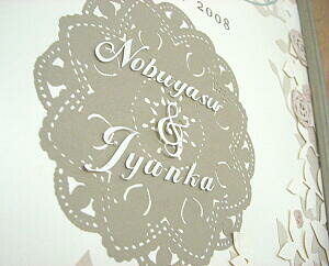 字だけでなく、背景に使ったレース、周囲のお花もすべて切り抜きです…。