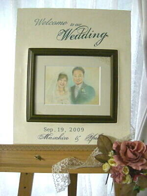 ドレス試着時の写真を参考に描いた、お二人の肖像画をメインに。